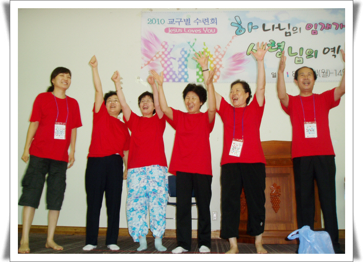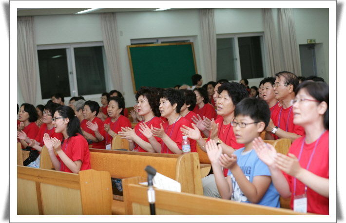 1교구 수련회 때 온 가족들이 기도하고 찬양하는 시간을 가졌습니다.